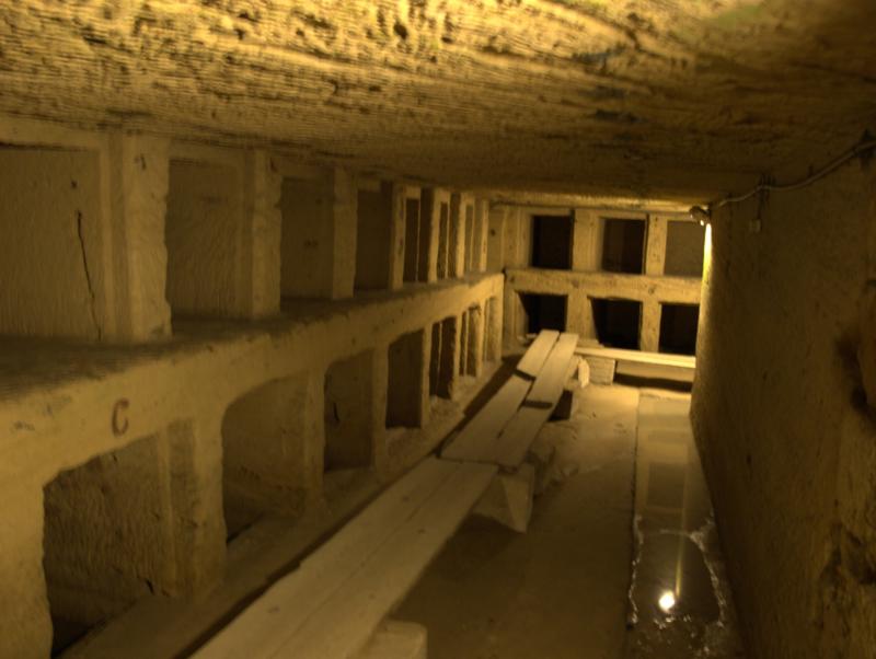 Katakomby Kum aš-Šukáfa v Alexandrii byly objeveny zcela náhodou roku 1900, když do přístupové šachty spadl osel.