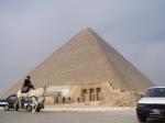 Chufuova, řecky Cheopsova pyramida zvaná též Velká pyramida byla vystavěna za vlády faraona Chufua, který vládl přibližně v letech 2551 - 2528 př.n.l.. Pro lepší přirovnání uvádíme, že její základna zabírá plochu 5,3 hektaru, což odpovídá zhruba dvaceti fotbalovým hřištím. Velká pyramida dnes ční do výšky 137,5 metru. Původně byla dokonce ještě o devět metrů vyšší, ale zub času se přeci jenom podepsal. Po dlouhá čtyři tisíciletí to zní dělalo nejvyšší stavbu světa. Délka základny je přes 230 metrů. Povrch Chufuovy pyramidy byl původně pokryt hládkým vápencem, ale to se do současnosti nedochovalo. Každopádně návštěva vnitřku Cheopsovi pyramidy vás překvapí. Úzké tunely, které se prudce svažují do faraonovi pohřební komory s žulovým safkofágem či větrací šachty namířené vzhůru k souhvězdím starověkého Egypta určitě stojí za námahu, jenž bude nezbytné vynaložit při exkurzi do vlhkého a horkého vnitřku Cheopsovi parymidy.